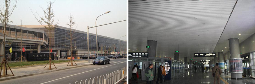 樞紐首層西側(cè)和中部為市區(qū)公交、市域公交、過境公交站臺,東側(cè)為長途候車廳及到發(fā)車站臺。南北設(shè)有自行車、小汽車庫出入口及出租車港灣。乘客通過樞紐二層天橋及連廊,換乘地鐵、長途、公交距離短。